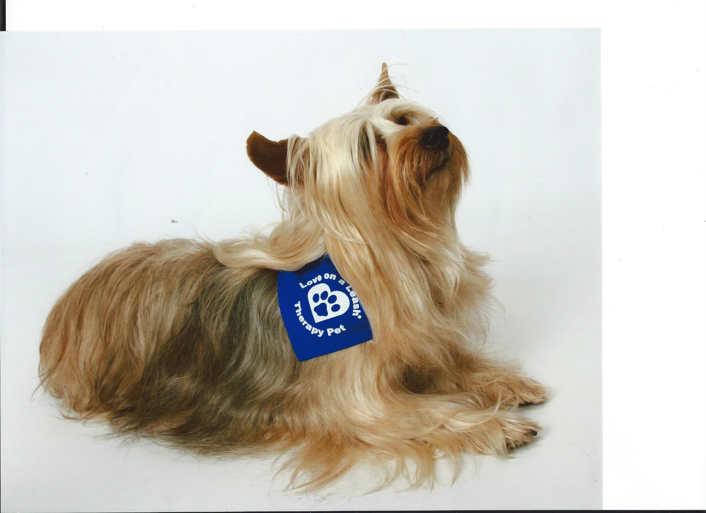The Lindas no longer take part in competitive activities because they are retired and also slowing down, but they know their dogs need to feel useful. Recently, in the spirit of supporting the community at large and providing a job for their dogs, J.P, Casey, and young Rocky have become Certified Therapy Dogs with the Love on a Leash organization in Oceanside, California. Casey, the only Silky girl in the family, has racked up four hundred hours of service and earned the first Distinguished Therapy Dog title for her breed.