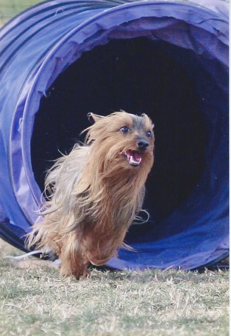 They also shared their home with Clio ,Mouse, both Border Collies, another show Silky named Albert, and Charlie, a five year old male Silky. The latter, a small performance powerhouse and “renaissance” dog, represented the best of the breed. Linda Louise was an avid show person and competitor. Linda Ann liked the activities as well, but it is Linda Louise who holds the competitive streak in the family and in Charlie she found her dream dog. Linda Ann worked with him in obedience, but Linda Louise took on the other disciplines. He excelled at everything: obedience, agility, conformation, herding, and go to the ground (track rats at end of a tunnel). Linda liked to win and Charlie liked to win for Linda.