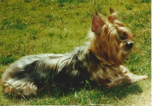 Tazz, another Silky, followed Danny’s adoption. Tazz was a lovely show dog that was signed over to the Lindas by the breeder when he got his championship title. He behaved in a submissive manner except in the show ring, where he knew how to strut his stuff. Tazz had a sensitive and refined soul and found commanding respect from other dogs to be challenging. He was a wise one, and on going back to his transcripts, I feel I would have liked to spend more time with him.
