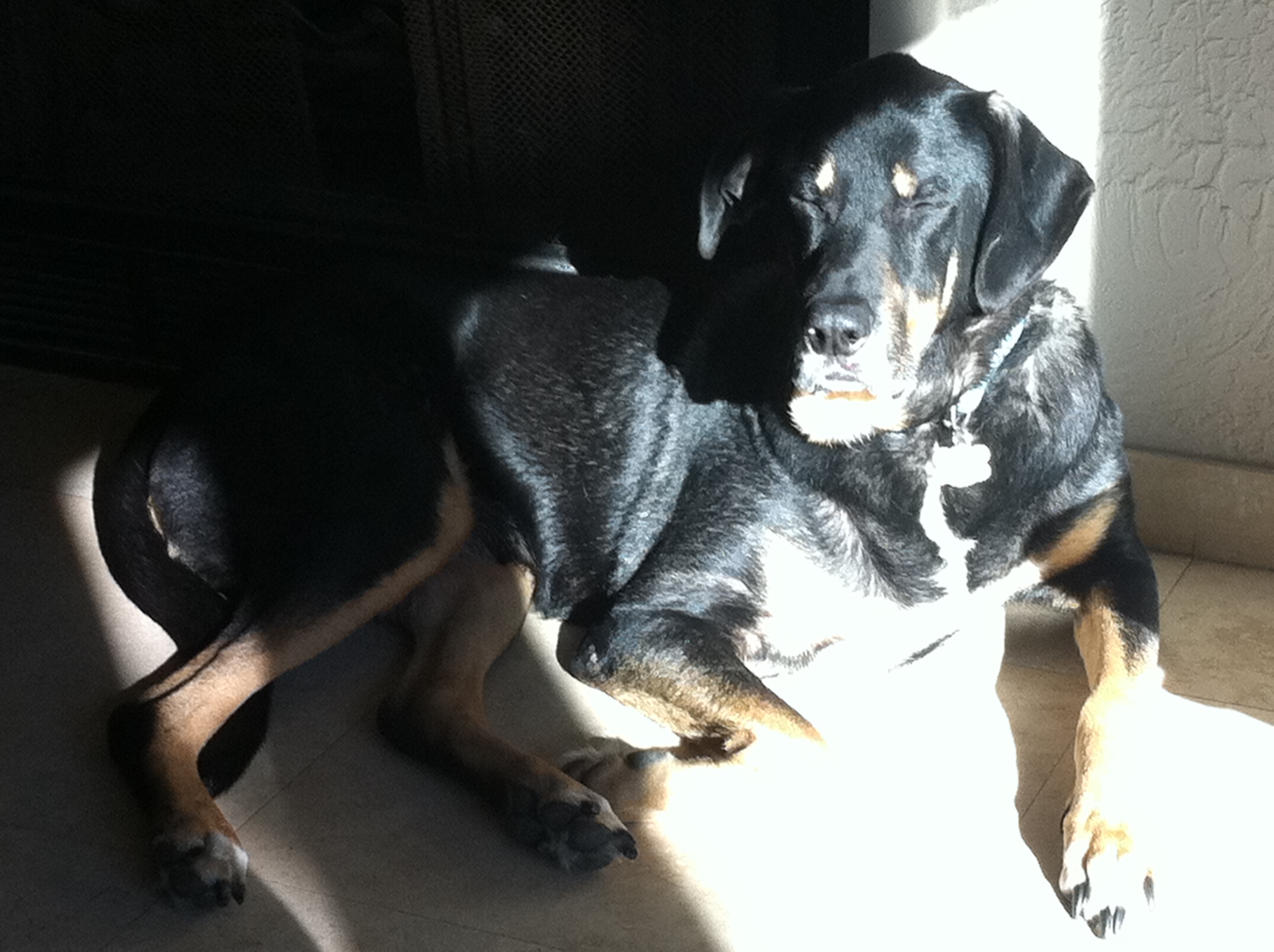 Roe, like Roscoe, was a highly sensitive individual and they were well matched for their journey together. It is important to remember he had a bird past life. It gave him an unusual sensitivity and would set him up a bit differently for this lifetime. A dog that feels everything has a lot of processing to do because he would register a lot of complex people feelings and emotions that most other dogs ignore. Roe would sense when he was overwhelmed and be able to manage a situation for him. For example, if he didn’t particularly like the dog park, they didn’t go that often and took him on walks. They learned by his behavior he preferred to stay inside rather than be out in the yard while they were away, and let him do so. Their good friend John played a big role in Roscoe’s life, because even though he was prone to worry, he found he could trust this person at a deep level. He would not be exposed to uncomfortable situations and if it did happen, John would know how to protect Roscoe. In the last year of Roscoe’s life John even made special visits weekly on his lunch break to give him extra TLC. Roscoe, who started out as a typical ‘diamond in the rough’ big dog learned, bloomed and flourished. Unlike the Little Prince’s rose, he never again had to fend for himself in a big, unfriendly world. Even though it was quite a challenge at the beginning, his people whole heartedly took responsibility for his wellbeing, physically, emotionally, and spiritually. Roscoe passed away with assistance at home on July 3, 2014. He was eleven years old. He lived his life to the fullest with the assistance of his people. When the time came, Roscoe let them know very clearly he was ready to go. Roe wrote “As tired as he was on his final day, when the veterinarian came to the house to put him down, he actually wagged his tail when he saw her. He knew exactly what was going to happen and he embraced it.“