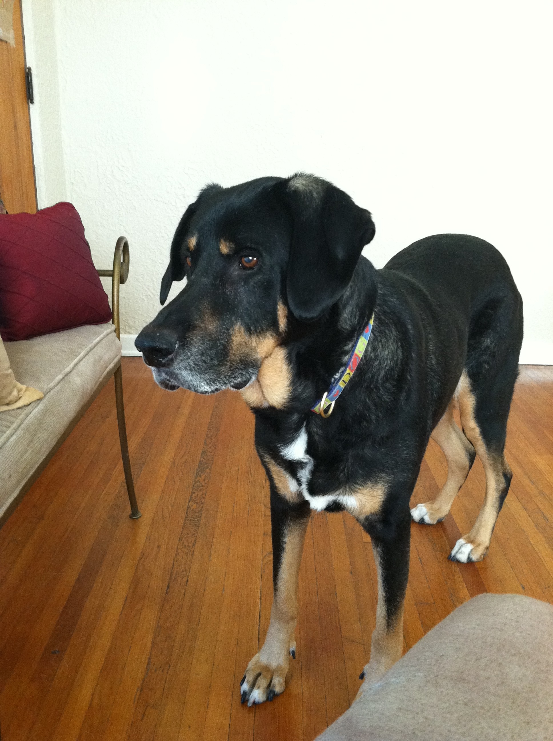 Two and a half years later Roe and Rahul made a second appointment with me. Roscoe’s time of remission was over.  A cancerous tumor in his mouth had been partially removed and a recent chest x-ray revealed tumors in his lungs. They needed to know how Roscoe, now ten years old, felt and were looking for support and clarity from him on how to proceed. In addition, Roe had a few questions written out: